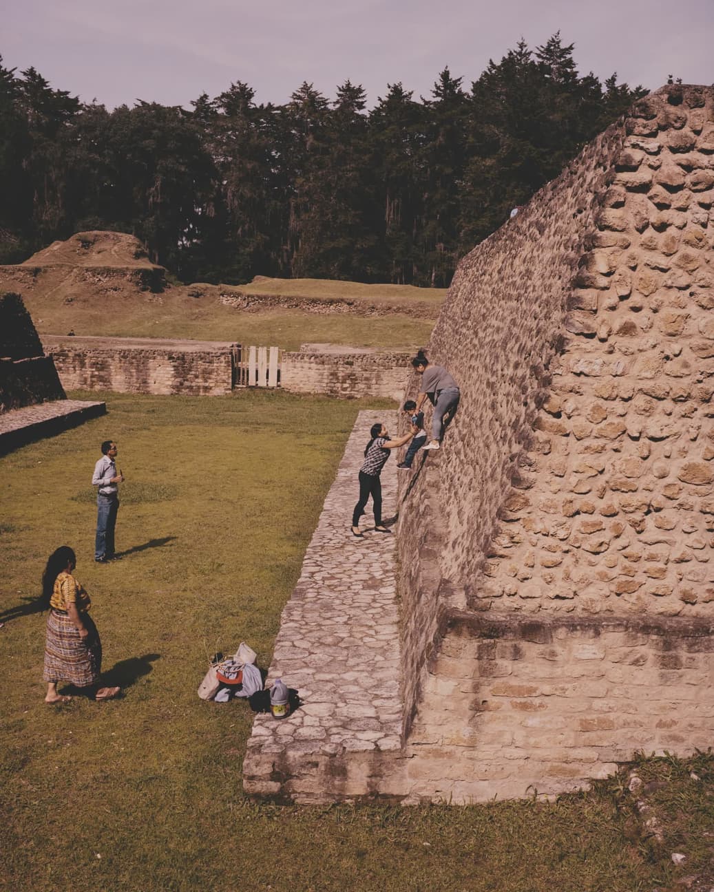 Pour retrouver le faste de la civilisation maya, mystérieusement effondrée autour du IXe siècle, cap au nord, vers le Petén, une vaste région — le tiers du pays tout de même! — ensevelie sous la forêt tropicale. À Tikal, au beau milieu de cette jungle quasi inaccessible jusque dans les années 60, d’audacieuses structures pyramidales surgissent de la canopée. La capitale des Mayas des Basses-Terres n’a été découverte qu’en 1848 alors que Cortès qui n’avait pourtant pas les yeux dans sa poche, a chevauché à quelques kilomètres des ruines sans même rien remarquer. Seuls 80 bâtiments sur les 3000 sans doute présents sur le site ont été extirpés de leur sarcophage végétal. Sur la Grande Place, bordée à l’est par le temple du Grand Jaguar, à l’ouest par le temple des Masques, des ataillons de fourmis grosses comme des trombones tondent déjà la pelouse. Un peu plus loin, l’ascension éprouvante du temple du Serpent à deux têtes — la plus grande structure précolombienne avec 64 mètres de haut — offre la vue la plus envoûtante de Tikal. Gare au vertige à la descente. Sous les frondes des kapokiers et des acajous s’esquissent les contours incertains d’un Angkor américain : terrasses et escaliers dévorés par d’insatiables pariétaires, embrasures enchâssées dans leur écrin de racines, intriguant château de dominos pris dans les convulsions d’une nature vindicative qui entend bien rester maîtresse du terrain. Un rugissement de fauve déchire l’air moite avant d’expirer en gloussements de dindon : « Le temps va changer », annonce le guide Antonio d’un air lugubre, « les singes hurleurs annoncent la pluie, il devrait pleuvoir d’ici 1h30 ».