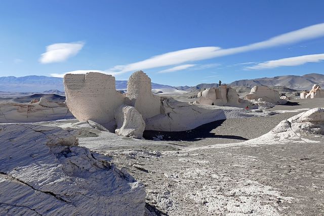 Nous laissons derrière nous le village d'Alfarcito et prenons de la hauteur en gagnant progressivement l'Altiplano argentin. Le décor minéral est ponctué de troupeaux de lamas et de vigognes. Nous traversons de nouvelles étendues de sel avec en toile de fond les volcans culminant à plus de 6000m. Nous voilà dans Los Colorados ; nouveaux contacts avec les paysages surréalistes de la Puna argentine. Nous sommes entourés de collines de terre et d'argile avec la sensation d'être sur une autre planète. Les sommets enneigés de la cordillère des Andes viennent parfaire le paysage. Arrivée à Tolar Grande en fin d'après-midi.
