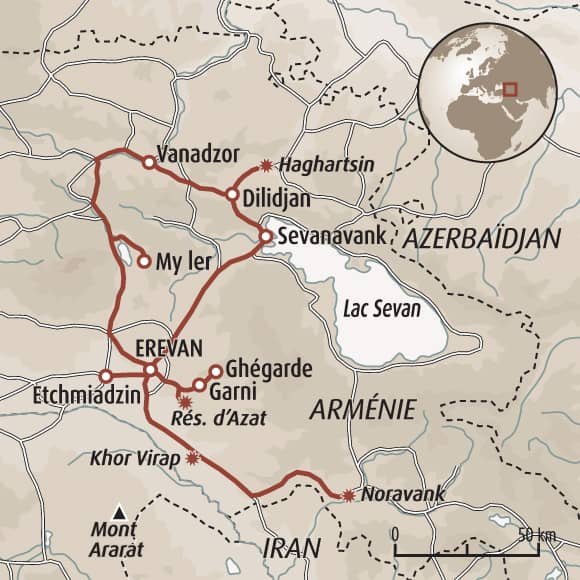 Célébrer la période de Noël en Arménie, c’est parcourir un territoire ancien où la foi, les traditions et la vie quotidienne s’entrelacent naturellement. Ce voyage s’adresse aux voyageurs curieux, sensibles aux cultures vivantes, désireux de donner du sens aux fêtes tout en prenant le temps de bouger et de découvrir. Nous déambulons dans Erevan illuminée, partageons des ateliers culinaires et artisanaux, marchons dans les gorges volcaniques de l’Azat et sur les rives du lac Sevan. Les grands sites du pays, le temple de Garni, les monastère de Guégarde et Noravank et la cathédrale d’Étchmiadzine, rythment l’itinérance, entre silence hivernal et ferveur spirituelle. Rencontres, dégustations et hébergements soigneusement sélectionnés prolongent l’expérience, dans un équilibre subtil entre découverte culturelle, nature et moments partagés.