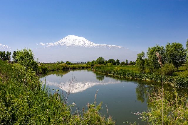 Nous partons vers le sud du pays, réputé pour ses paysages contrastés. Premier arrêt au monastère de Khor Virap, dominé par le mont Ararat (5147m). Nous visitons ce site de pèlerinage important, devenu quasiment un emblème du pays. Depuis le monastère, nous profitons d'une vue imprenable sur le mont biblique et les plaines d'Ararat. Nous continuons notre route vers la région de Vayots Dzor, riche en histoire, art et viniculture. Nous laissons derrière nous les plaines pour gagner doucement de l’altitude. La route serpente entre les montagnes pour arriver au col de Tukh Manuk (1795m). Après le déjeuner, nous découvrons le monastère de Noravank, l'un des monuments les plus intéressants d'Arménie, tant pour sa conception architecturale que pour le site où il a été implanté. En effet, de vertigineuses falaises ocre, habitées par d'innombrables espèces d'oiseaux, entourent ce monastère du XIIIe siècle. Retour à Erevan, dîner d’adieu dans un restaurant charmant.