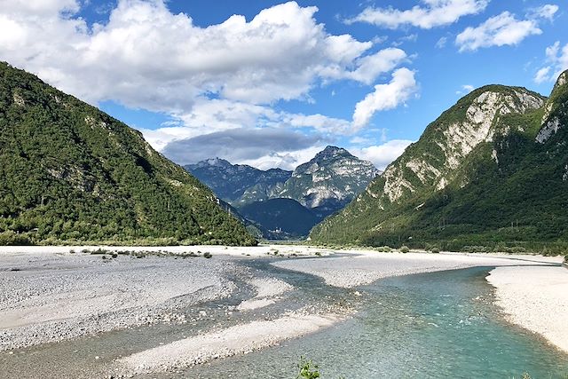 La variété des paysage fait de cet itinéraire une vraie aventure L’arrivée sur la lagune de Grado est émouvante après ces longues étapes de montagne La descente depuis Tarvisio le long de l’ancienne voie ferrée avec ses tunnels est à savourer tranquillement Après Grado nous avons poursuivi jusqu’à Trieste en prenant le ferry. A recommander absolument car Trieste vaut le voyage. On peut monter sur le ferry avec des vélos .