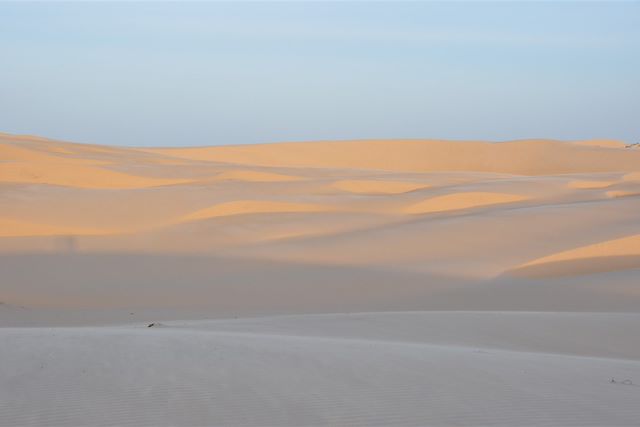 Départ aux aurores en 4x4 jusqu'au Rio Negro pour la première étape de notre traversée du parc des Lençois Maranhenses, initialement réalisée par les autochtones pour ravitailler les familles, cette traversée est désormais partagée avec les amoureux du lieu, parfois nombreux, qui viennent rendre visite aux natifs. Cette première et courte étape nous mène à l'oasis Baixa Grande. Sur le chemin, nous aurons l’occasion de profiter pleinement des dunes et des baignades dans les lagunes. A notre arrivée à l'oasis, un déjeuner bien mérité nous attends. Nous profitons de ce cadre idyllique et coupé du monde pour reprendre des forces pour la journée de demain.