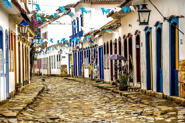 Nous partons en début de matinée en longeant la côte pour rejoindre la ville portuaire de Paraty. Après notre installation à l'hôtel, nous continuons avec une visite guidée du centre historique. Nichée entre la mer et les premiers contreforts de la Serra do Mar, Paraty abrite l’un des plus beaux héritages coloniaux du Brésil, classé au patrimoine mondial par l’Unesco. Au fil des ruelles pavées, nous découvrons ce legs exceptionnel, témoignage des fastes des 17e et 18e siècles. Sublimes édifices, 4 superbes églises baroques, dont Santa Rita de Cassia qui héberge aujourd’hui un musée d’art sacré. Le port de Paraty s'est construit suite à la découverte de gisements d'or et de diamants dans le Minas Gerais. Sa fonction était d'acheminer ces richesses vers le Portugal. La ville présente aujourd'hui encore de nombreux témoignages maçonniques au travers des peintures et des structures des maisons qui avaient pour but d'informer sur la nature des personnes habitant le lieu. A marée haute, l'eau investit les rues du centre-ville, raison pour laquelle il est fermé à la circulation.