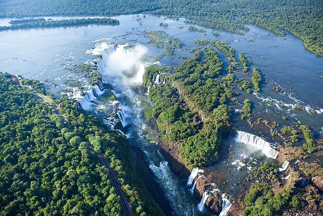 Ce site classé patrimoine mondial de l'Unesco est composé de 275 chutes étalées sur 3km, dont la plus haute, la Gorge du Diable, dépasse les 80 mètres. Historiquement, les Indiens Tupi-Guarani et Paragua conféraient à ce site une valeur sacrée d'inhumation. Après être rentrés sur le site, nous prenons le train touristique du parc vers le point de départ de la Gorge du Diable. Nous arpentons les passerelles aménagées qui surplombent le fleuve ; au fur et à mesure de notre progression, nous ressentons le souffle grandissant des chutes et les embruns de plus en plus forts (prévoir un K-way ou un poncho de pluie). Depuis le sommet de la chute, nous peinons à voir le bas tant la brume est épaisse, par contre nous pouvons apercevoir ça et là les martinets qui nichent sur les parois, à l'abri des prédateurs. Le reste de la journée est consacré à arpenter les vastes sentiers du parc argentin qui nous mènent parfois sous les chutes. Nous prendrons notamment un bateau qui nous amènera au plus près des chutes, voire même SOUS les chutes... Au cours de la journée, nous aurons l'opportunité d'observer plusieurs espèces qui peuplent la forêt (coatis, singes, aigles, etc...). Retour à l'hôtel en fin de journée.