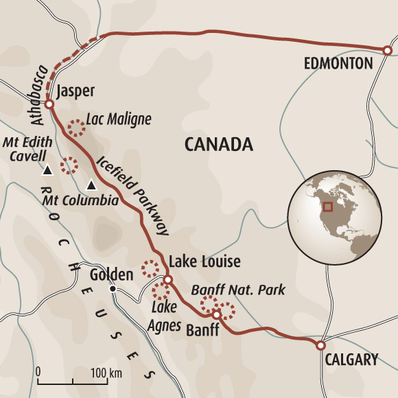 Transfert vers le cœur des Rocheuses avec arrêts fréquents et courtes excursions le long de la promenade des Glaciers. Vous découvrirez les noms célèbres des Rocheuses comme le lac Peyto ou encore le glacier Bow. Au Columbia Icefield, de gigantesques glaciers donnent naissance à des rivières qui finiront leur parcours en se jetant dans trois océans différents. Une randonnée de 2,5 km nous mènera jusqu'à une crête venteuse à 2260m d'altitude où nous aurons une vue imprenable sur le glacier Saskatchewan. Nuit à Jasper.