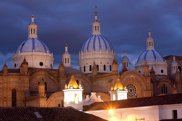 Cuenca a été construite sur les rives du fleuve Tomebamba. Nous nous promenons dans ses rues, déclarées patrimoine mondial de l'humanité par l'UNESCO. Considérée comme la plus belle ville du pays, elle est calme et possède une architecture bien préservée. Nous visitons ce joyau de l'architecture coloniale, son musée des cultures aborigènes, qui présente une collection privée de pièces archéologiques des cultures précolombiennes, puis sa fabrique de chapeaux « panamas » tissés avec de la paille de toquilla, dont le degré de finesse est une prouesse artisanale remarquable. Nous nous rendons également au marché aux fleurs, qui a lieu tous les jours de la semaine sur la place devant l'église de Carmelo de la Asunción.