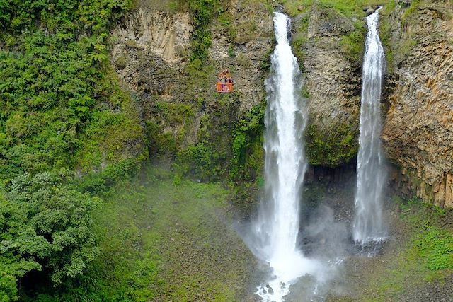 Journée à Baños de Agua Santa, petite ville subtropicale perchée à environ 1 800 mètres d’altitude, réputée pour la qualité de ses eaux thermales et entourée de hautes montagnes verdoyantes.