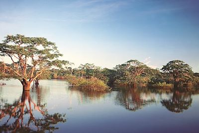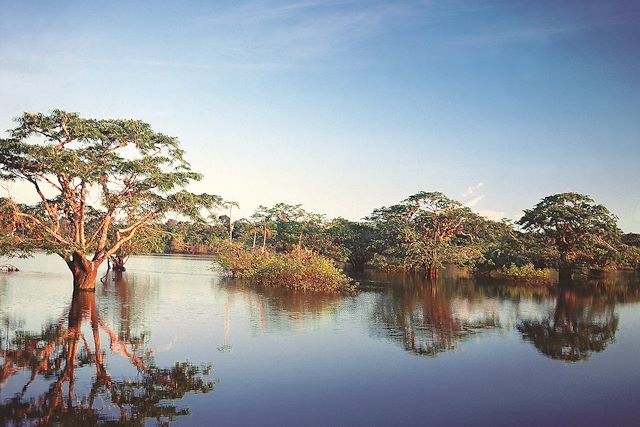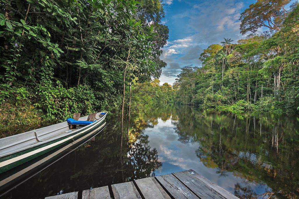 Une fois arrivés au Pont du Cuyabeno, vous embarquez en canoë à moteur sur la rivière Cuyabeno en direction de la « Laguna Grande », où se situe votre lodge. Tout au long de cette navigation, vous pourrez déjà apprécier la richesse exceptionnelle de la faune et de la flore de la région.
