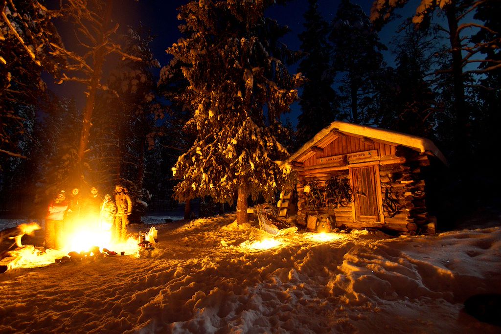 Sur la période de Noël et du nouvel an, c'est le début du "Kaamos" en Laponie, la nuit polaire. Le soleil n’apparaît plus au-delà de la ligne d’horizon, ce qui crée des couleurs magnifiques dans le ciel qui durent plusieurs heures. La luminosité du jour dure à peu près 4 heures (de 10h à 14h environ) avant que la nuit apparaisse. La nuit qui tombe est d'abord d'une couleur bleutée, ce qui vous permet de poursuivre vos activités extérieures dans une ambiance magnifique. Puis vient la nuit noire, et il faut terminer avec une lampe frontale. Toutefois, la réverbération de la lumière de la lune et des étoiles sur la neige vous permet d'avoir une visibilité sur parfois plus de 100 mètres !