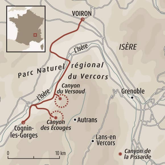 L’idée de ce voyage : s’élancer dans les canyons du Vercors et découvrir le canyoning comme un jeu de mouvement, fluide et progressif. Ce séjour s’adresse à celles et ceux qui veulent s’initier en douceur, bouger et vivre des sensations accessibles. Guidés par un expert, nous avançons à notre rythme. Nous marchons dans l’eau, glissons sur la roche, descendons des vasques sculptées par le temps. Les sauts restent facultatifs, l’engagement se choisit. La lumière, la fraîcheur et le silence accompagnent la progression. Entre action et pauses, le partage s’installe. Une parenthèse nature vivante, idéale pour prendre confiance et se reconnecter.