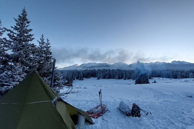 Il faut tout de même avoir conscience du froid et de l'environnement hivernal car les 2 nuits se font en bivouac où une participation collective est demandée pour monter/démonter le camp.