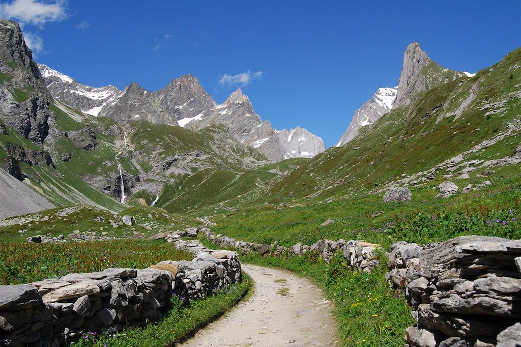 Cette partie nous conduit des glaciers géants du pays du Mont-Blanc à ceux des dômes de la Vanoise, tout aussi imposants. Sur notre chemin, en bordure de route, des collections de bidons à lait nous rappellent l’authenticité de la vie pastorale des alpages du Beaufortain. Ici, pas de place pour l’élevage industriel, même si, très souvent, les troupeaux de tarines comptent plus de 150 têtes. Nous avons privilégié sur ce parcours guidé, quelques belles variantes et cols d'altitude, à déguster en toute sérénité ! L'occasion de se sentir seul au monde, dans les vastes espaces des montagnes de Vanoise.