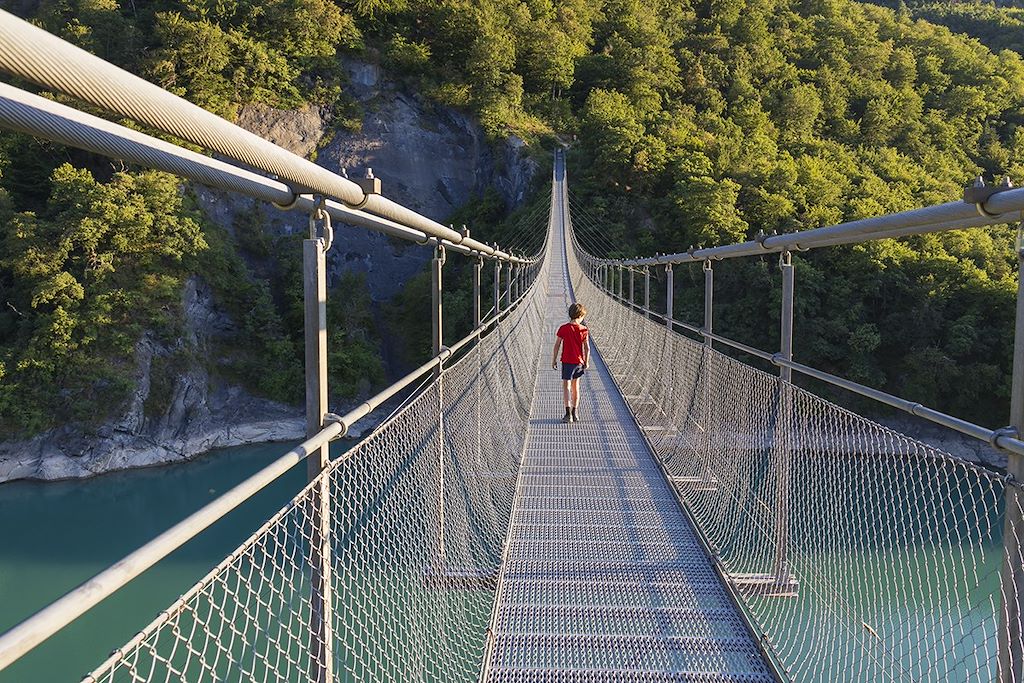 Ce matin, nous partons pour le village de Mens pour visiter le marché de producteurs. Nous y choisissons fromages, fruits et pains dorés, tandis que les enfants s'attardent devant les étals colorés. Nous déjeunons ensuite en plein air, face au lac de Monteynard. L'après-midi, nous traversons les passerelles himalayennes suspendues au-dessus des eaux turquoise, une expérience impressionnante et ludique. Le soir, allongés dans l'herbe, nous découvrons ensemble le ciel nocturne avec un passionné d'astronomie, observant les constellations et les légendes associées.