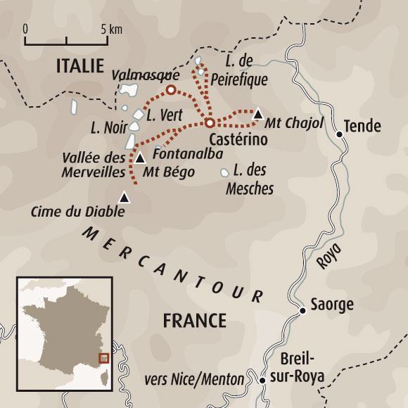 Pour ce séjour, un court transfert de 4 km aller/retour est prévu le J4 pour rejoindre le refuge des Merveilles. L’accompagnateur l’organisera sur place avec les véhicules personnels des participants et le sien. Tous les autres départs de randonnée peuvent se faire à pied depuis l’hôtel.