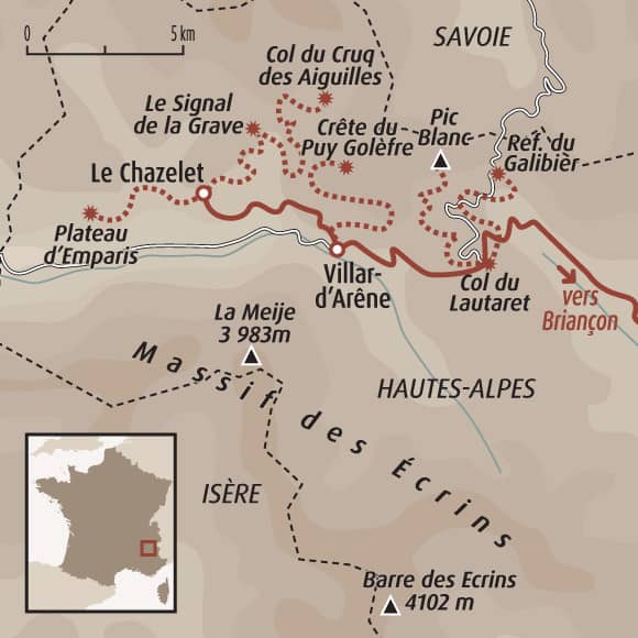 Rendez-vous directement à l’hôtel à Villar-d'Arêne à partir de 16h (précisions en convocation). Si vous arrivez en voiture, vous l'utiliserez pour vous rendre sur les départs des randonnées.