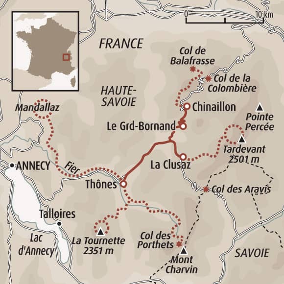 Les combes des Aravis au-dessus de La Clusaz, le massif du Jalouvre côté Grand-Bornand, le secteur du Charvin ou encore le sommet emblématique de la Tournette forment notre terrain de jeu. À chaque ascension, le spectacle est grandiose : d’un côté la chaîne du Mont-Blanc, majestueuse et proche, de l’autre des vues plongeantes sur le lac d’Annecy scintillant en contrebas.