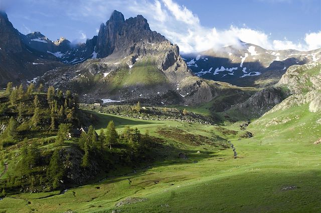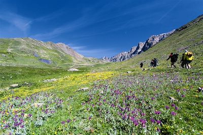 C'est une formidable immersion que nous vous proposons au travers de ce circuit dans la haute vallée de la Clarée, encore très préservée. Dès le premier jour, perché sur le promontoire du grand Aréa, vous bénéficierez d'un premier aperçu des fantastiques panoramas qui vont s'offrir à vous. Point d'orgue de ce circuit : le fameux mont Thabor (à plus de 3000m d'altitude) qui comblera les amateurs de grands espaces. Mais cette vallée sauvage vous émerveillera également par la multitude de lacs, véritable miroirs des cimes, qui seront à la portée des moins frileux pour une "brasse vivifiante". Une semaine inoubliable loin du tumulte du quotidien !