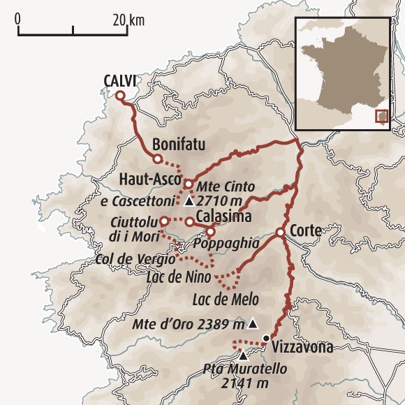 Grâce au programme choisi et à un sac allégé, nous avons pu pleinement profiter des sentiers très techniques du nord de la Corse et des belles montagnes parcourus. L'ascension du Monte Cintu (2'706) était top mais nécessite une excellente expérience alpine. Merci à toute l'équipe de Terres d'Aventure.