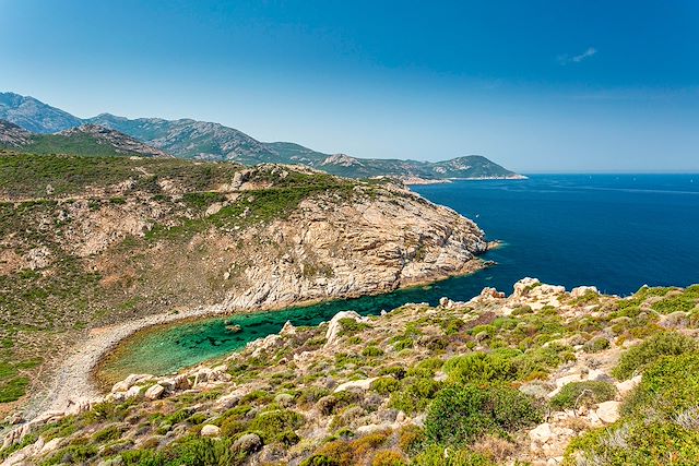 Note : possibilité d'écourter la randonnée par un sentier direct vers la plage de Bussaglia et l'hébergement de Serriera, afin de profiter d'une éventuelle sortie en bateau dans la réserve de Scandola ou de déjeuner en bord de mer.