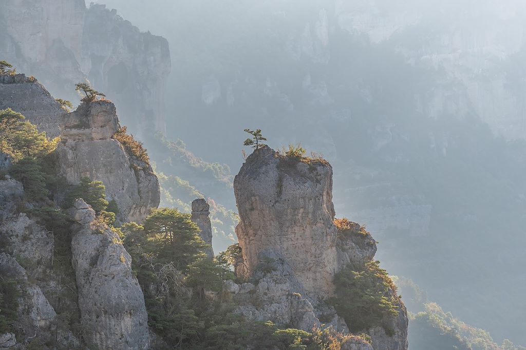 Après le petit déjeuner, un court transfert vous conduit aux portes du Causse Noir. La randonnée commence sur d'anciens chemins de transhumance, qui serpentent à travers le paysage, entre buissons, genévriers et murets de pierre sèche. En approchant l'Ouest du plateau, l'itinéraire s'enfonce dans une belle forêt de pins. Peu à peu, le sentier nous emmène vers l'Hermitage de Saint-Michel, perché au-dessus des gorges. D'ici, vous découvrez une vue plongeante sur le canyon et les eaux claires de la Jonte. Après une baignade bien méritée, vous reprenez la marche sur un sentier qui descend jusqu'à Peyreleau, où se termine le séjour. Pour ceux qui sont arrivés en train, transfert à la gare de Millau.