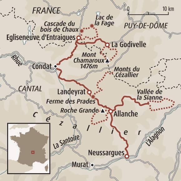 Au départ d'Allanche, la capitale du Cézallier, belle randonnée en boucle vers la petite vallée de Cézerat puis Landeyrat avant de monter sur Roche Grande. Au retour à Allanche, visite guidée de l'espace Cézallier avant de rejoindre l'hébergement.