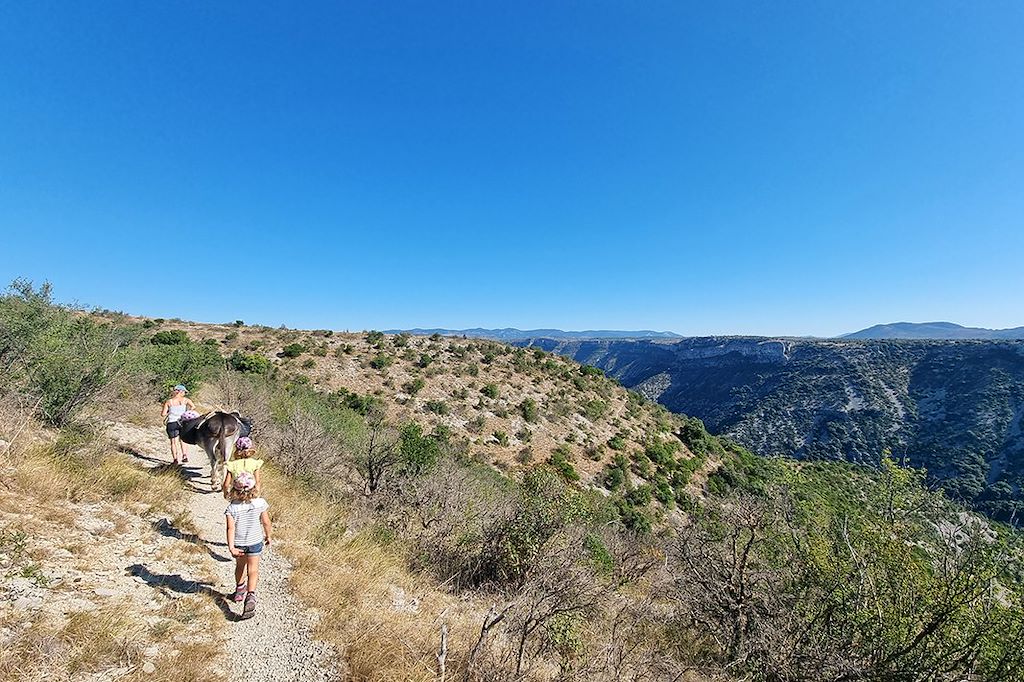 Randonnée pédestre itinérante avec un âne, adaptée aux familles (conseillée aux enfants à partir de 6 ans).