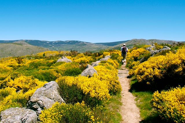 La journée commence par un court transfert jusqu'au hameau de Fortuniès, qui domine la vallée de la Santoire (20km / 20 min). De l'autre côté, se dessine le massif volcanique cantalien. L'itinéraire monte vers les Puys et le plateau du Limon, en passant par Nozières et la Croix du Gendarme, avant de redescendre dans la vallée glaciaire de la Rhue, encadrée par l'impressionnante face nord du Puy Mary. La journée se termine dans la vallée du Claux.