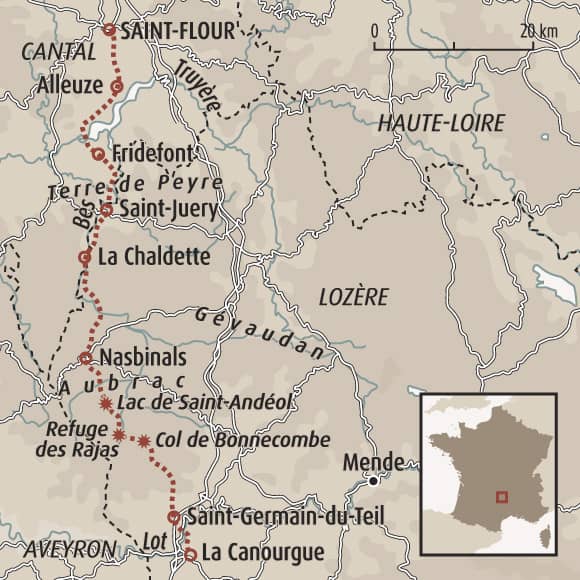 Note : départ déconseillé les mardi et mercredi : pas de repas possible au refuge des Rajas le dimanche soir, ni à St-Germain du Teil les dimanche et lundi soir.