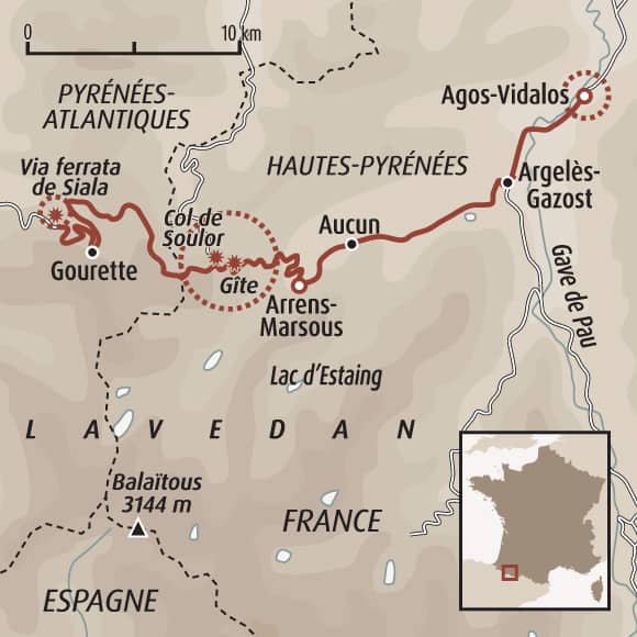 Depuis Pau, prendre la D937 jusqu’à Lourdes, puis poursuivre sur la D821 et la D918.