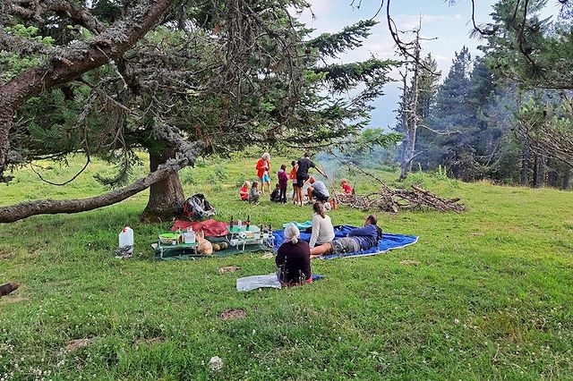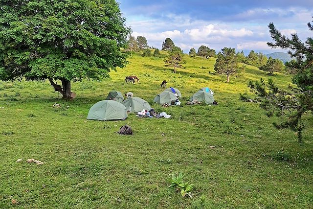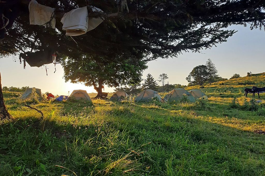 Ce bivouac est un moment privilégié mais le confort est toutefois assez spartiate. Nous mettrons à votre disposition une tente facile à monter, des matelas de sol (10cm d'épaisseur), une douche solaire, des toilettes sèches ainsi que tout le nécessaire pour le repas du soir. Nous vous demandons d’amener vos propres duvets (température de confort de 10°C, température limite de 5°C) qui seront transportés le lendemain matin par véhicule. Quoi qu’il en soit, votre accompagnateur sera là pour vous aider et vous donner tous les bons "tuyaux" pour que cette nuit à la belle étoile se passe au mieux.