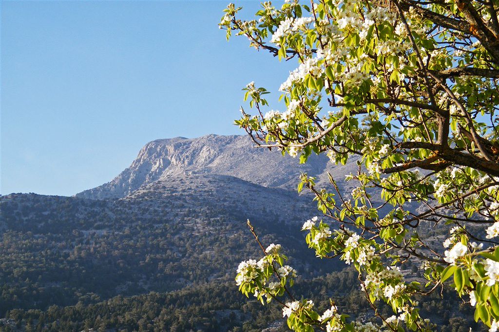 Une randonnée variée qui traverse des milieux typiques des pentes nord des Montagnes Blanches. Vous démarrez à environ 600?m d’altitude dans le hameau de Zourva, niché sur les contreforts d’une vallée verdoyante. La montée progressive emprunte d’anciennes drailles bordées de forêts de cyprès et de pins, caractéristiques de cette région montagneuse très arborée autour de Zourva. Au fur et à mesure que l’itinéraire s’élève vers 1050?m, les arbres laissent place à des paysages plus ouverts et karstiques, sculptés par le calcaire, avec des roches érodées et des clairières baignées de lumière. À l’arrivée, une source fraîche abritée sous de grands platanes offre un lieu de pause bienvenu.