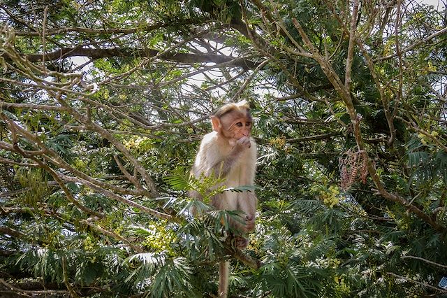 Nous quittons Marattuppadi pour rejoindre la réserve de Parambikulam, nichée au cœur de la chaîne de montagnes des Ghâts occidentaux. Ce sanctuaire naturel abrite une faune exceptionnelle, avec des éléphants sauvages, des tigres, des gibbons, des cerfs et de nombreuses autres espèces, ainsi qu’une flore luxuriante typique des forêts tropicales humides du Kerala. Le parc applique une politique de conservation stricte, visant à protéger ces écosystèmes fragiles. Le nombre de visiteurs est donc limité, et certains itinéraires peuvent être explorés à pied, nous offrant une opportunité de s'approcher de ce monde sauvage de manière respectueuse. Accompagnés de guides locaux, nous pourrons en apprendre plus sur la faune et la flore du parc, véritable havre de biodiverstité.