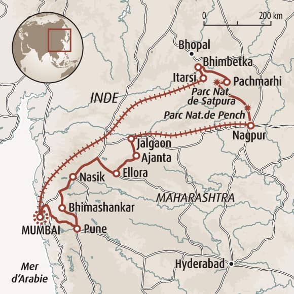 Note : en cas d'arrivée dans la nuit du jour 1 au jour 2, Terres d'Aventure prend en charge le supplément pour une nuit d'hôtel à votre arrivée à Mumbai.