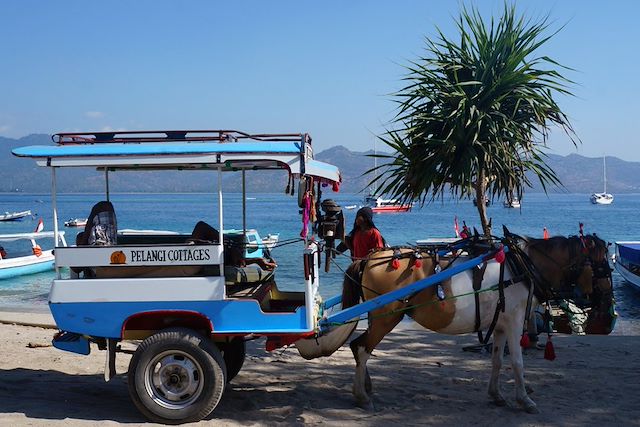 le transfert à l’arrivée entre le port et l’hôtel à Gili n'est pas inclus et se fera en calèche. Prévoir 10 euros par trajet pour 2 personnes avec bagages.
