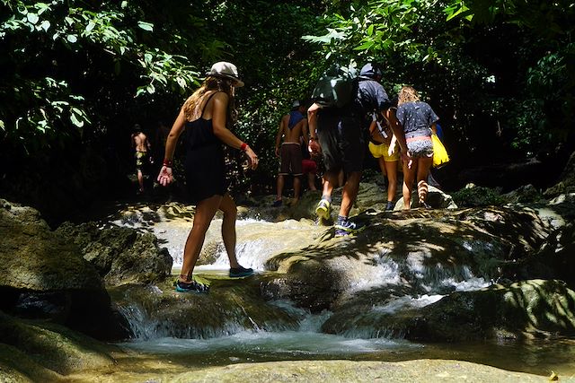 Au petit matin, randonnée dans la forêt primaire. Nous traversons dans un premier temps une mangrove dont les cimes atteignent une hauteur rare pour une forêt de palétuviers, un écosystème fragile mais pourtant indispensable. Nous empruntons ensuite un sentier étroit qui longe une rivière cristalline pour rejoindre de splendides cascades. Nous aurons le temps de profiter de cette atmosphère de bout du monde avant notre retour sur le bateau en fin de matinée. Puis, nous profitons d'un nouveau snorkeling pour découvrir les fonds marins environnants, avant de visiter, en fin d'après-midi, un village papou.