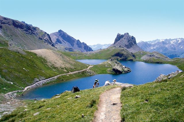 Transfert à la frontière franco-italienne (1h) au niveau du col de Larche. Nous partirons à la découverte du Val Maira par l'un des plus beaux cols frontaliers, celui de Ruburent (2502m). Par un magnifique vallon verdoyant, nous rejoignons le lac d'Oronaye qui s'étire dans le fond de cette vallée. Du col, nous descendons pique-niquer au bord du lac de Roburent... nous sommes déjà en Italie ! Retour au col de Larche par le même chemin.