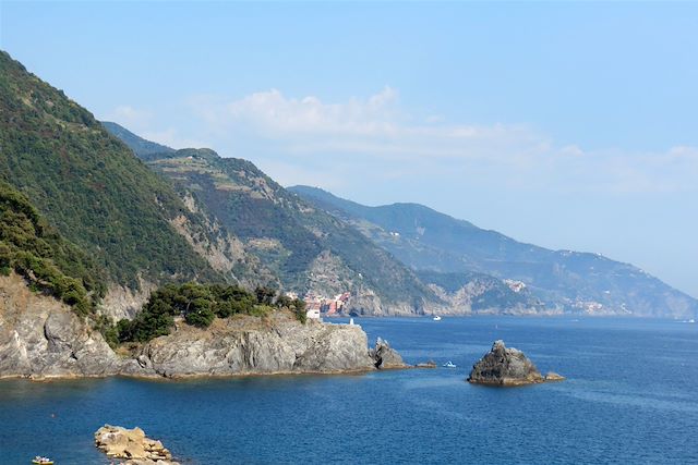 Après la visite du village de Corniglia, vous vous dirigez vers l’église Saint-Pierre où débute le sentier de randonnée pour rejoindre Vernazza. Le sentier, relativement plat au début, offre peu à peu de belles vues sur le village de Corniglia. Le chemin continu en grimpant puis redescend jusqu'à Vernazza.