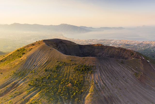 Départ pour l’ascension du Vésuve, volcan mythique qui domine la baie de Naples. Son cratère spectaculaire et la vue panoramique rappellent la puissance de l’éruption de l’an 79 qui ensevelit les cités voisines. Accompagnés d’une guide locale spécialisée en volcanologie, nous explorons des zones hors des sentiers battus et profitons d’une expérience unique.