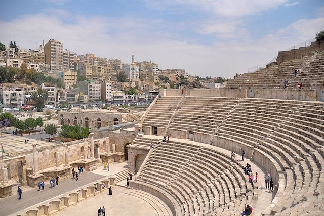 Après le petit déjeuner visite de la vielle ville d'Amman : le temple d'Hercule, la citadelle et le théâtre, avant de prendre la route du désert pour rejoindre le wadi Rum, le fameux désert rouge de Jordanie. Déjeuner en route.