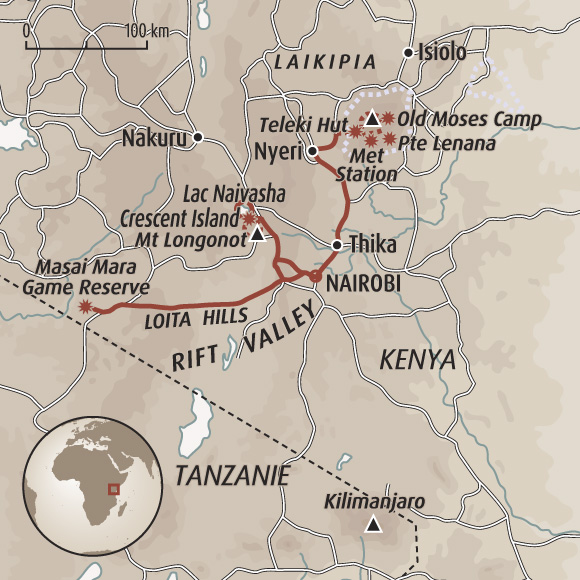 Un voyage riche en émotions, entre montagnes et savanes. Vous commencerez par l’ascension du Mont Kenya via la voie Sirimon, une progression douce jusqu’à la pointe Lenana (4 985 m), avec nuits en refuge au cœur de paysages saisissants. Puis, direction le sud pour explorer les écosystèmes exceptionnels du Masai Mara, à la rencontre des Big Five lors de safaris mémorables. Le voyage se poursuit dans la vallée du Rift, avec des expériences plus intimistes : safari à pied à Crescent Island, balade à vélo à travers les gorges de Hell’s Gate... Ce voyage de contraste et d’intensité célèbre toute la diversité du Kenya, des sommets aux savanes.