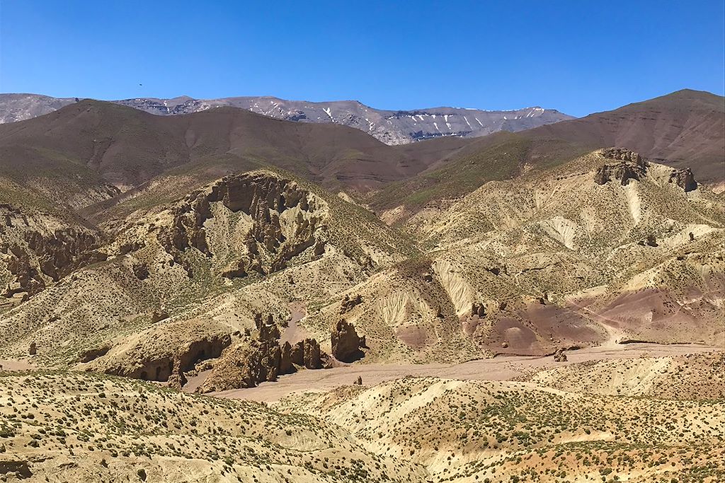 Petite montée par le col (2860m) et le sentier caractéristique d’Assdremt. Nous rejoignons les hauts plateaux à 3200m, territoire des nomades. Découverte des gouffres et des grottes qu'ils occupent tout l’été, avant d’atteindre le camp de base du M'Goun sur le vaste plateau de Tarkeddit. Installation du bivouac à 2890m.