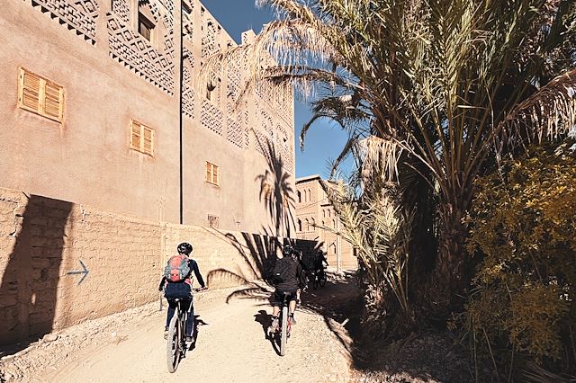 Au petit déjeuner, nous profitons encore de la vue sur la vallée avant de reprendre les vélos pour la dernière portion le long du M’Goun, jusqu’à sa confluence avec l’oued Dadès. Selon la période, l’ambiance de la fête des Roses anime Kelaa M’Gouna. Après le déjeuner, nous retrouvons le minibus pour rejoindre Ouarzazate, où nous arrivons en fin d’après-midi. Diner libre à Ouarzazate.