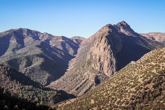 Belle étape pour rentrer dans le cœur de l’Atlas central et ses hauts sommets. Les paysages s’ouvrent encore sur de larges espaces, mais les forêts deviennent plus rares, seuls les fonds de vallées restent verdoyants. En automne, les couleurs des quelques arbres qui bordent les cultures contrastent avec les roches nues des montagnes.