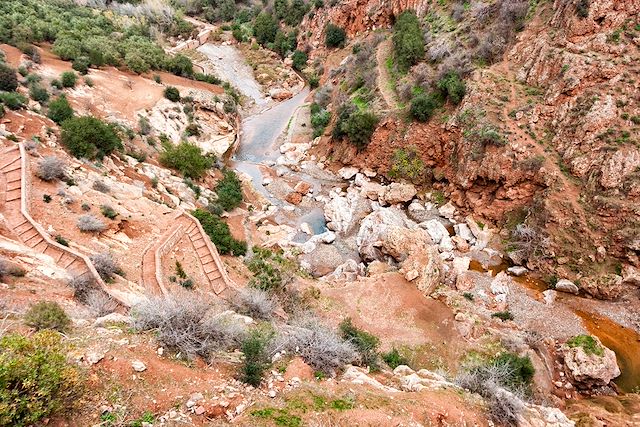 Nous faisons une halte à quelques pas du site naturel d’Imi’n’Ifri, la "bouche de l'ogre", un pont naturel sous lequel s’engouffre la rivière. Cette étape, variée et très agréable sur une petite route de montagne asphaltée, nous offre un panorama riche et diversifié à chaque coup de pédale.
