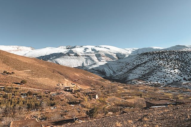 Belle étape pour rentrer dans le cœur de l’Atlas central et ses hauts sommets. Les paysages s’ouvrent encore sur de larges espaces, mais les forêts deviennent plus rares, seuls les fonds de vallées restent verdoyants. En automne, les couleurs des quelques arbres qui bordent les cultures contrastent avec les roches nues des montagnes.