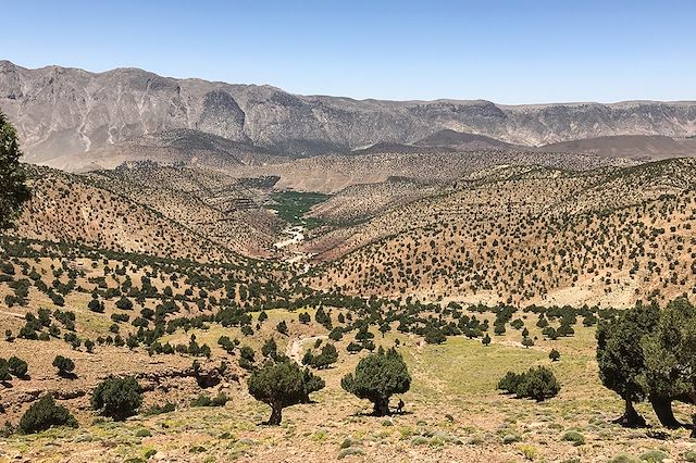 Dans la "vallée heureuse" des Aït Bougmez à 1800m, les Berbères perpétuent un mode de vie ancestrale et authentique. L'auberge de charme Dar Si Hamou est la base idéale pour découvrir les villages en pisé et en pierres, partir à la rencontre de ce peuple, découvrir les petites gorges d'Arous, les bergeries d'Ikkis, ou admirer le M'Goun du Tizi N'Ait Imi.