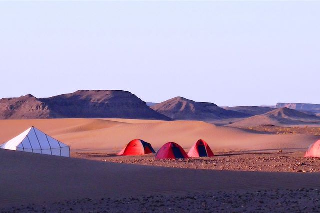 - 3 nuits en bivouac*, sous tente double ou twin (montée par notre équipe logistique sur place) - attention pas de possibilité de tente triple (si vous voyagez à 3, il faudra prévoir un supplément pour avoir une tente individuelle).