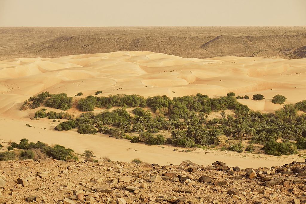 Après une immersion totale dans les sables, nous ferons escale à la petite palmeraie d’Aouinet et Tiliski. Coincée entre les lames de grès du massif de Tamga, le bouquet de palmiers est une belle découverte, du plus haut sommet du massif, le guelb Raoui.