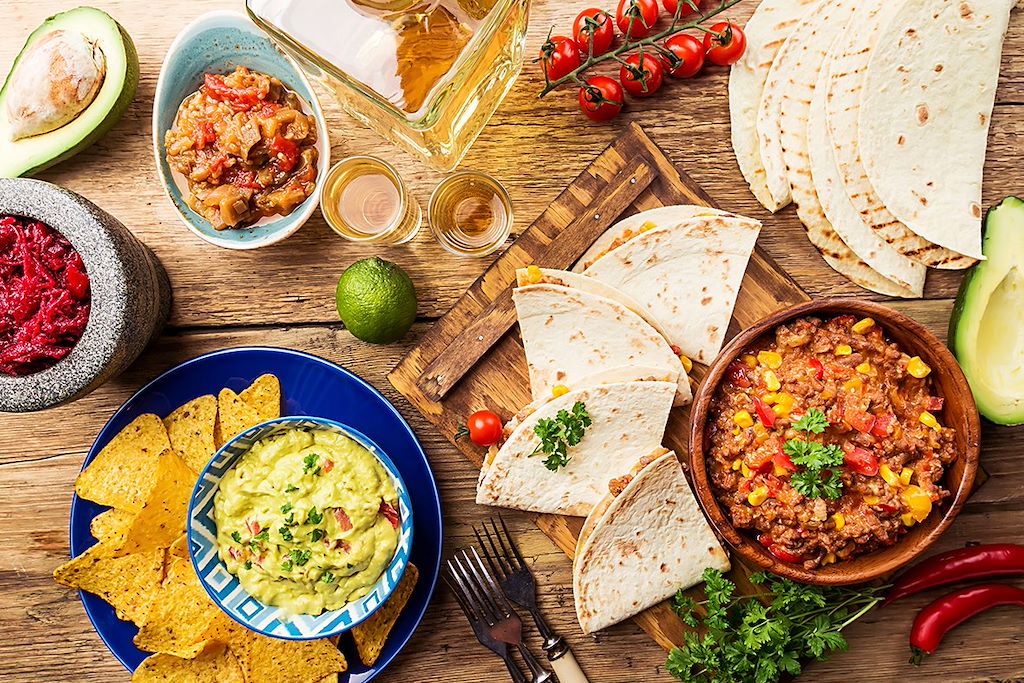 Le taco : tortilla garnie de viande de bœuf, de porc, de poulet, de foie ou de cervelle.