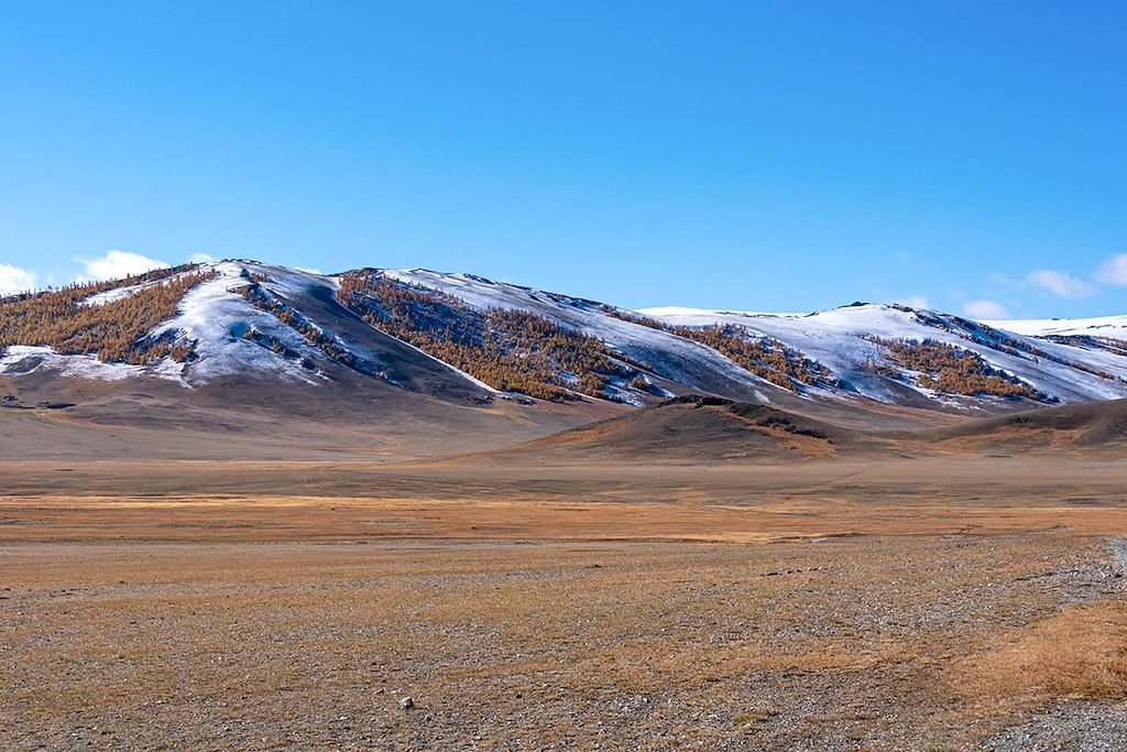 Envol pour la ville de Khovd ou Ulgii selon les disponibilités (vol d'1h40 environ mais soumis à des aléas climatiques et opérationnels). Nous arrivons à Khovd généralement en milieu de journée. Bienvenue dans la mythique chaîne de l'Altaï !